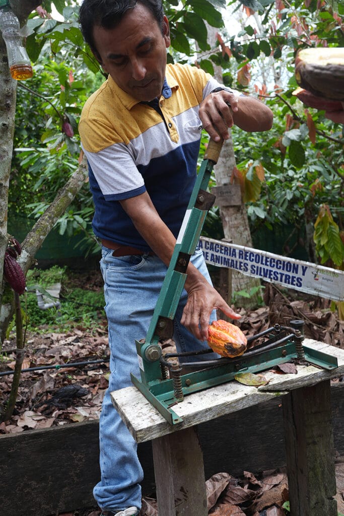 This September I travelled alone to Peru as part of a PROMPERÚ-funded trip, attending Expoalimentaria in Lima before visiting cacao- and coffee-growing regions in San Martín and Pucallpa. The journey offered a deep look into the smallholder farms and agroforestry systems that shape both crops — and the livelihoods that depend on them. Across these areas I met farmers cultivating a mix of local cacao varieties and hybrids among CCN51, reflecting the diversity and adaptability of Peruvian cacao. Many of the farms I visited practiced agroforestry, growing cacao and coffee beneath shade trees and using organic techniques such as strimming around the trees to manage weeds without herbicides.